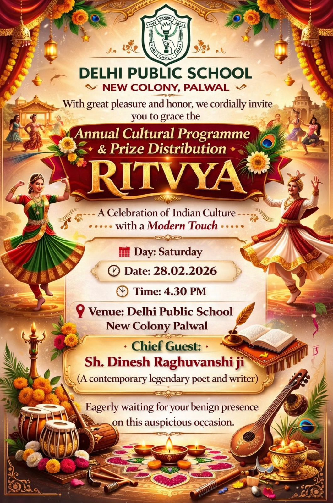28 February 2026 Timing 4.30 pm Class Pre-Nur to VIII Venue:DPS New Colony Palwal